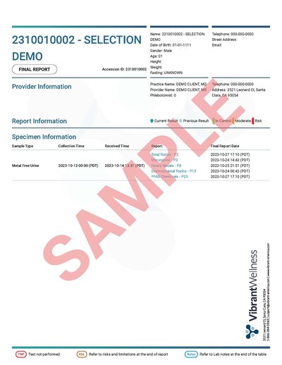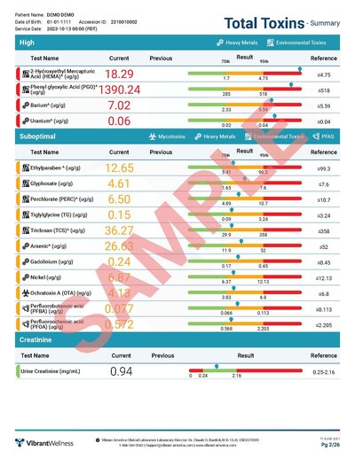 Toxic exposure is a reality of our daily lives and can lead to elevated oxidative stress and increase demand on the body's detoxification pathways, particularly in the liver. The test measures the levels of: